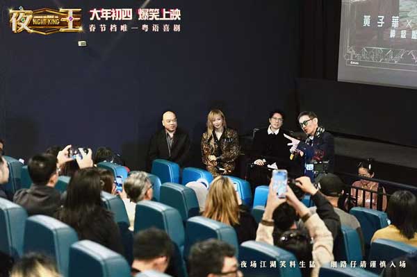 广州路演现场气氛热烈,不少观众都在放映结束后自发鼓掌,称赞影片“春节档看的最开心的一部”“近几年最精彩的港产贺岁喜剧”“笑出眼泪、笑到捶桌”。而导演吴炜伦、领衔主演黄子华的现身更让现场掀起更高热浪。影片作为两人继《毒舌律师》后的二次合作,黄子华现场分享连续两次接导演的戏是一种必然“《毒舌律师》导演找你再拍,当然是同意”。导演吴炜伦回答两部的区别,“《毒舌律师》讲公义,《夜王》讲情义。两部戏都有义字。不管是律师江湖还是夜场江湖,不变的是“情义”。