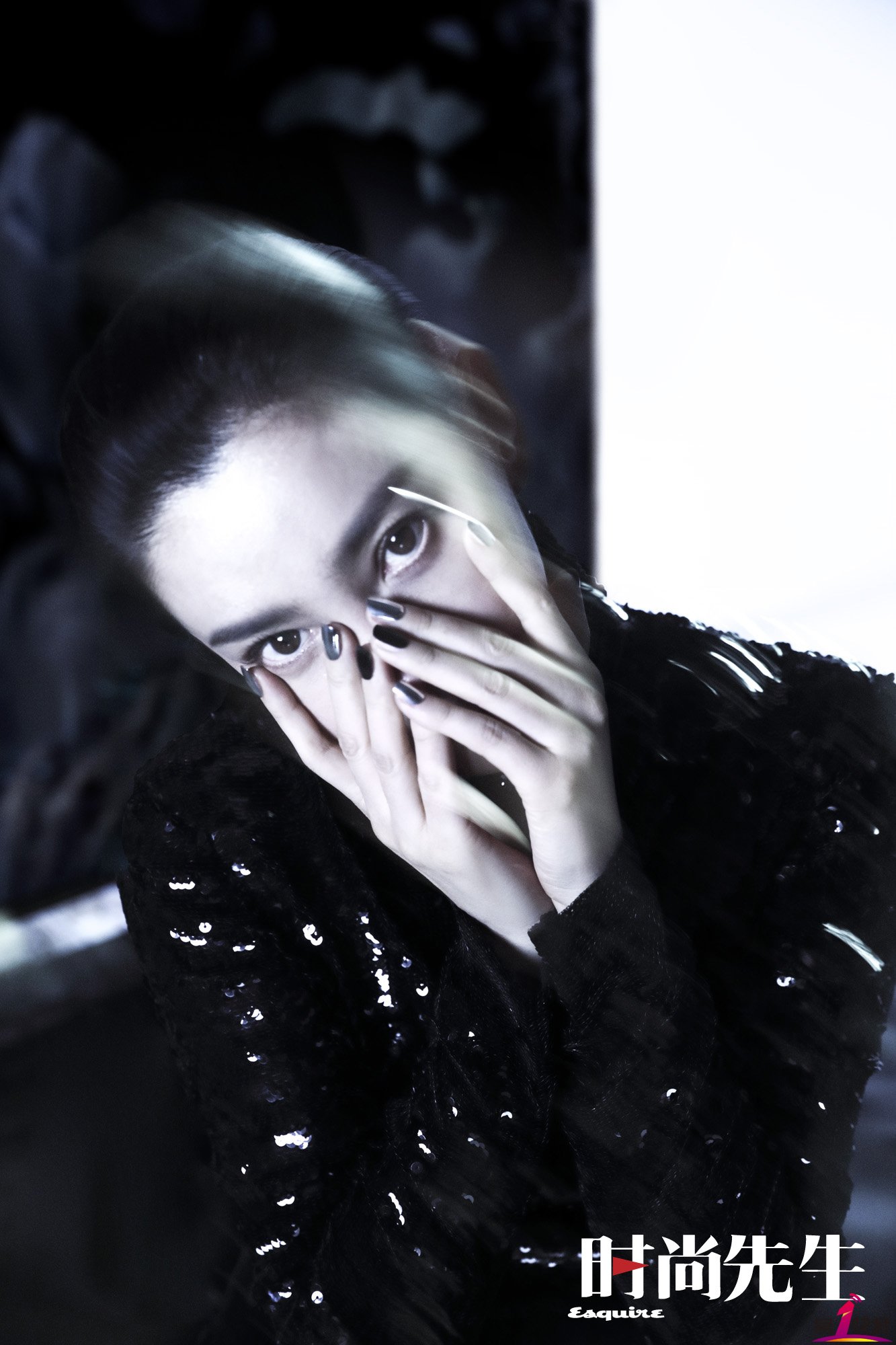 在曝光的封面和内页大片中,李冰冰整体以暗黑系科技感的视觉造型搭配出镜。暗黑光影中,李冰冰半遮面伫立于画面中央,整体氛围感十分的赛博朋克,镜头前的她眼神坚定有戏,情绪感十足。黑色紧身镂空设计感连身衣、廓形收腰皮质感西装等多套造型,勾勒出李冰冰曼妙的身材曲线,又A又飒,举手投足间释放内心独特魅力。
