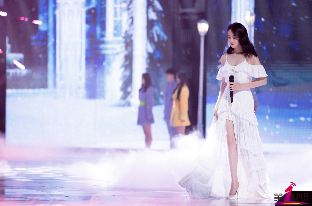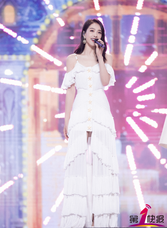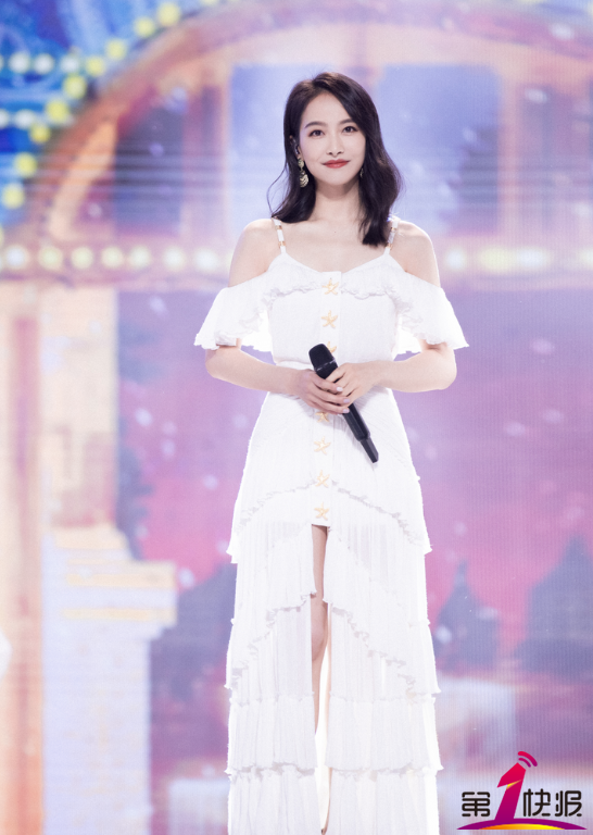 宋茜一袭白色维纳斯月光裙徐徐而来,裙摆曳地落落大方,耳畔金色贝壳耳环与裙上金色海星遥相呼应,脉脉温情颂歌,在纯白舞台中,宛若置身美好梦境。表演过后,宋茜也来到台前为观众送上了新年祝福:“祝大家牛气冲天”。